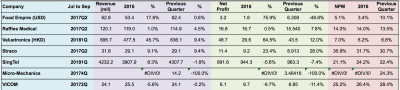 With the exception of Micro-Mechanics, the rest of my top 10 counters have reported their quarterly report. I will update this post with MMs results when it is out later this month which I believe would be a good.