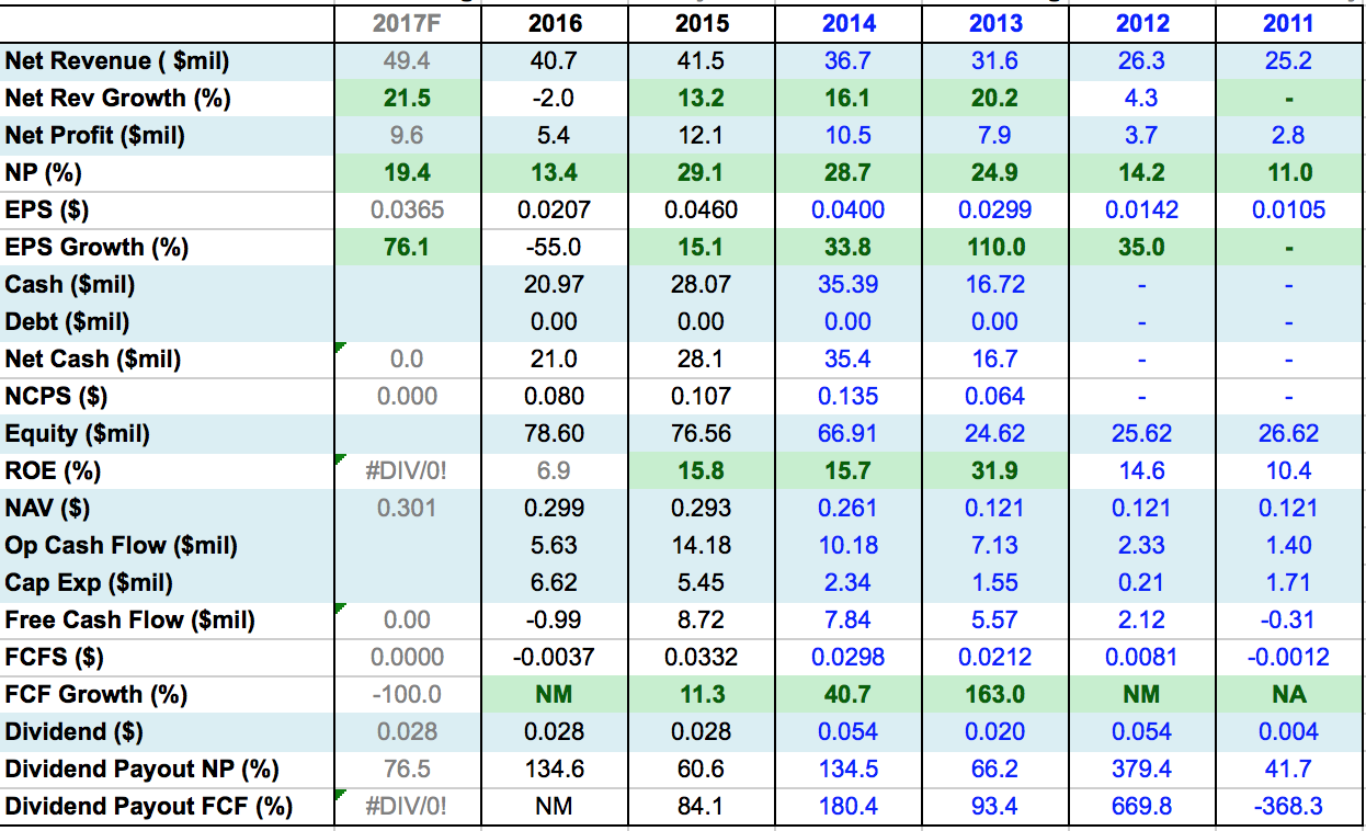 With the exception of 2016, iFAST has grown both its top and bottom lines, with its EPS growth outpacing its net revenue growth.