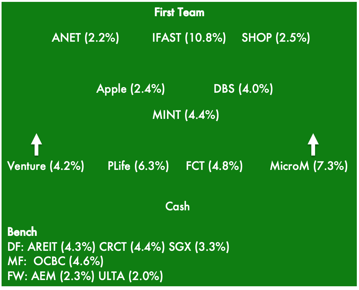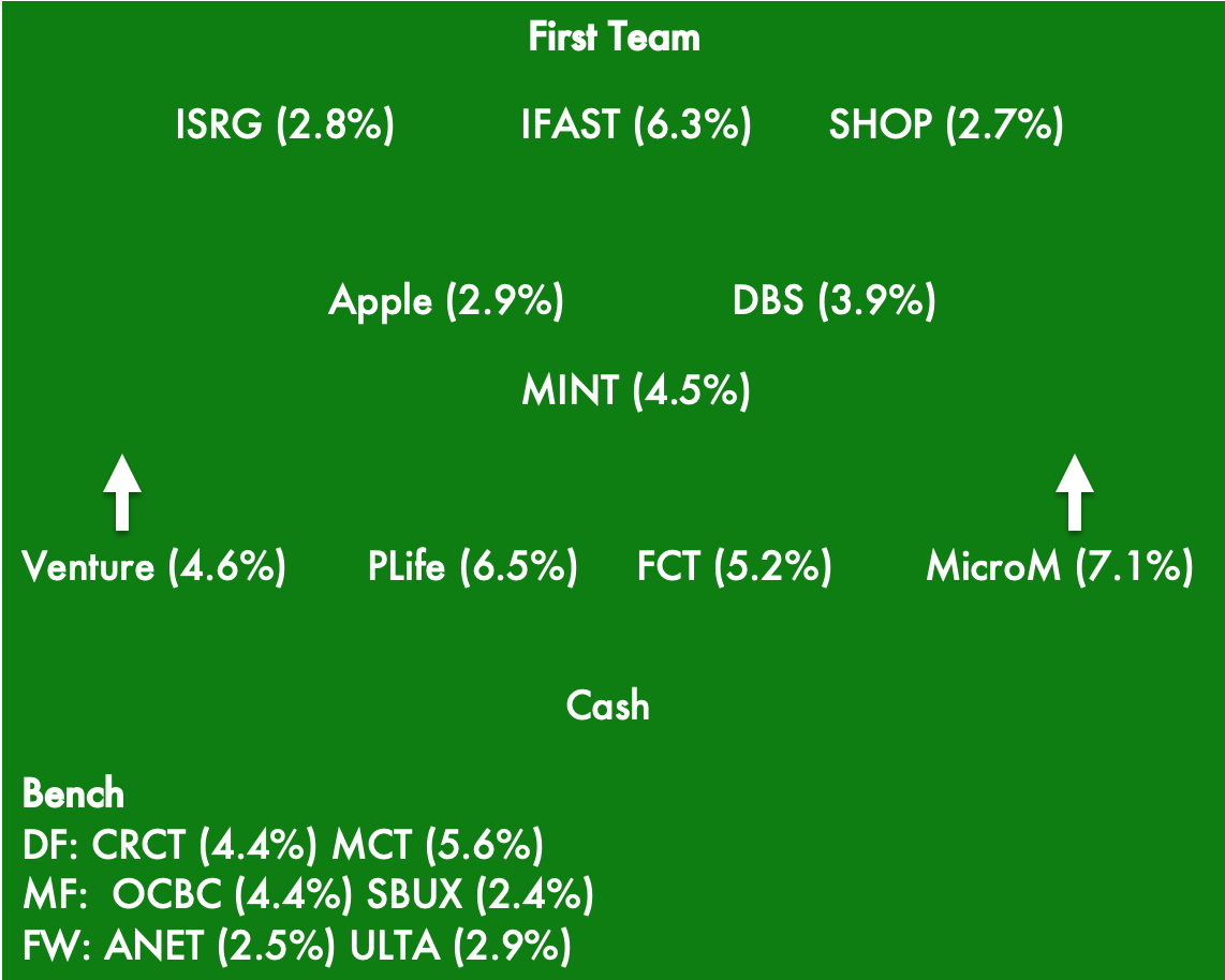 With most of my cash intended for investment deployed, the bulk of the team should remain largely unchanged for the next quarter. The next adjustment will come from the youth team, in which I am going to exit some positions. The cash raised will be used to increase other positions in the youth team.