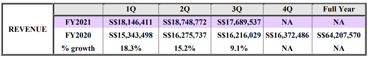 From the numbers, its growth is decreasing on a quarterly basis. Not too concern about that yet as quarterly numbers do fluctuate but definitely would keep an eye on it. Based on this set of results, strong cashflow and balance sheet, I am confident that it will at least maintain its final dividend of 7 cents, which will bring the total dividend for the year to 13 cents. And that is a 3.9% yield based on current price of $3.33.