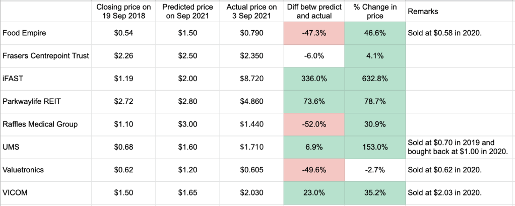 As I felt the emotion during the turbulent market in 2018, I decided to take out my crystal ball on 18 September to see how the counters will do towards the end of 2021.