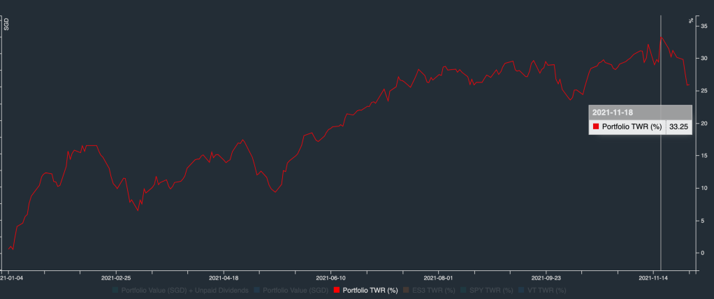 With my portfolio dropping more than 5% from its all time high 33% in mid November, it’s time to activate the opportunity fund again. Luck was on my side this time round as I just replenished it with my sales of DBS shares on 24 November! Nothing fanciful in my purchase. Basically, I just top up most of the income counters in my portfolio. These are the counters that I like and am confident that they will be able to sustain or increase their dividend in coming years.