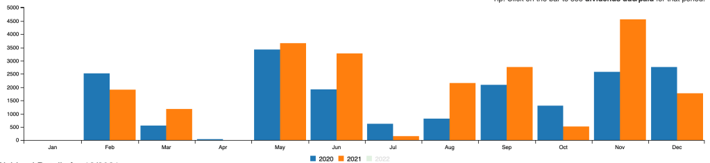 At the end of the last year, I was projecting a 20k dividend for this year and I am pleased to report that I was wrong. The dividend collected for the year hit 22k, 10% higher than projection!