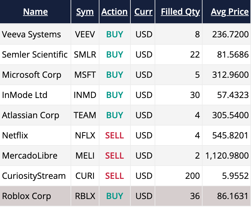 To fund the purchase, I fully divested CURI, reduced my stake in MELI and NFLX, and injected some capital. With that, I should be done until the upcoming quarter of results. Oh, that is provided my portfolio does not go 12% under before that!