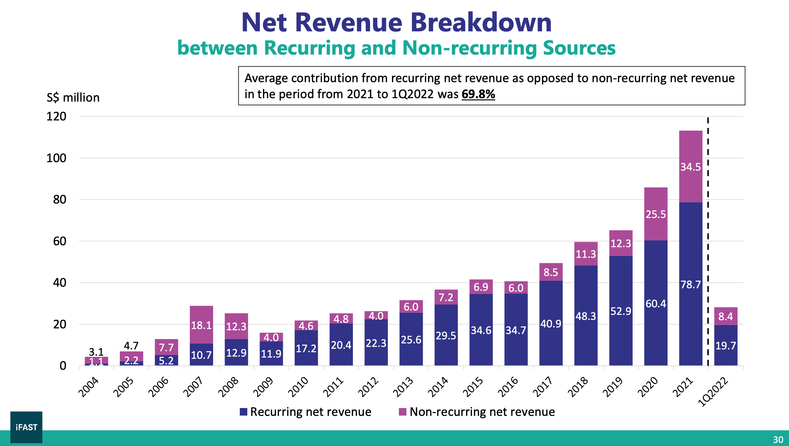 One of my initial reasons that led to my investment in iFAST is its recurring revenue. Personally, I feel that this provides the stability to the group’s business. So it’s good that this is still growing at 8.8% despite the weak market condition. Hopefully, this growth can be sustained going forward in the coming quarters.