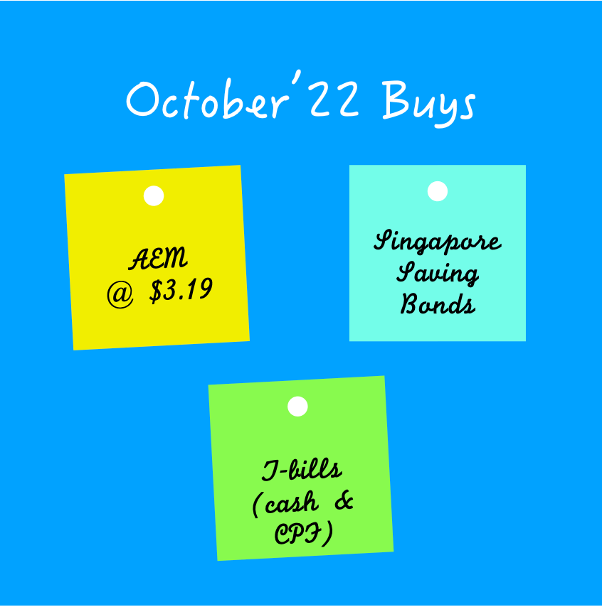 Why not wait longer before buying? I could have but I also wanted to invest my CPF in T-bills and possibly add more to Lion Global Infinity Stock Index Fund. Hence I need to buy AEM first, else I will hit my CPFIS limit for stock again.