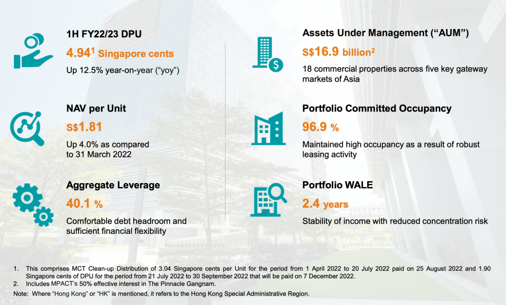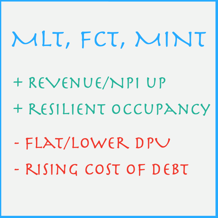 The Reits are facing pressure from the increase in cost of debt and operating expenses. While all the above three saw increase in revenue and net property income, DPU has dropped for all if we exclude various measures such as releasing retained earning etc. Given that the occupancy stays resilient for the moment and rate hike is likely to slow going forward, the impact should be bearable for the coming year. Hopefully, the managers can also find some ways to mitigate the increase in cost in the next few quarters.