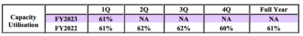 Given the capacity utilisation stays pretty steady, I am expecting similar trend going forward and the group should report lower earning for this financial year. Having said that I am still hopeful that dividend will be maintained as both their cash flow and balance sheet remain strong.