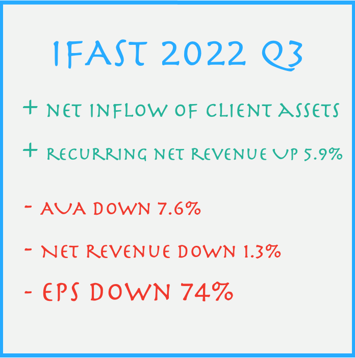 As expected, iFAST continues to struggle this quarter. Without impairment, it reported a $2 million net profit for this quarter. The key reason behind the number is a flat revenue and increase in operating cost. This should continue for the next few quarters until the contribution of eMPF project comes end next year. Management has chose to maintain its dividend which is a consolation for the current quarter.