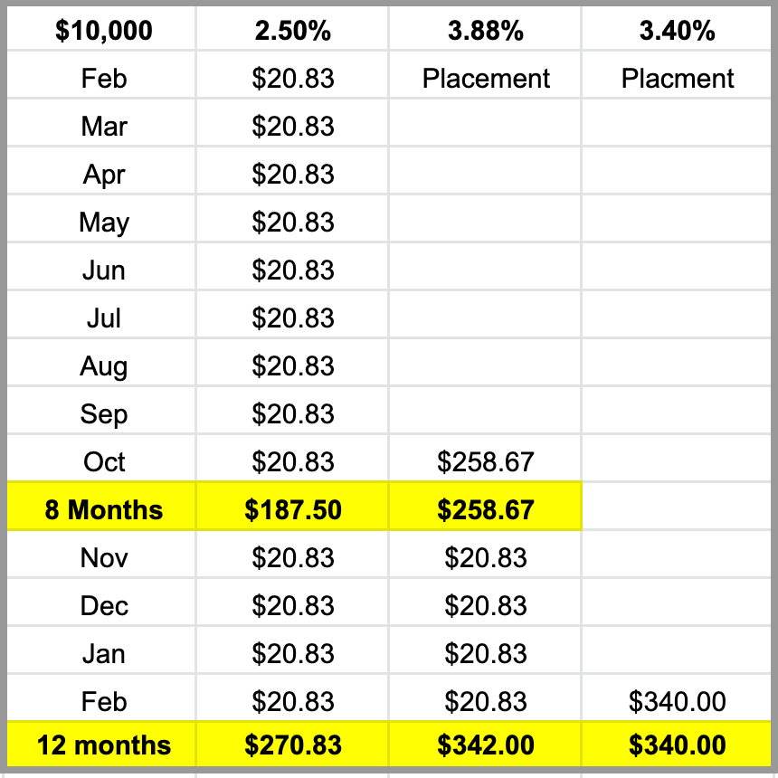 Given that the latest T-bill yield is 3.88%, this is a good offer! The total interest received for the two tenures are about the same. The table below shows the computation of the interest received if $10k is placed. After subtracting the fees, there will be a net gain of about $65 in interest. The deal is good enough for me, so I decided to make a trip to the branch.