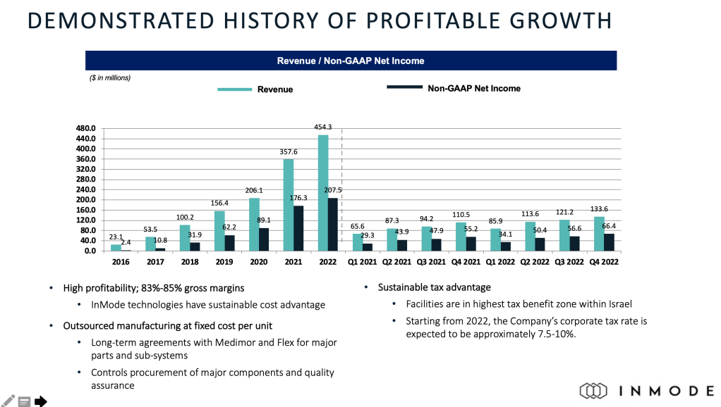 The above image would have piqued the interest of any fundamental investor. 6 years of double digits growth in both top and bottom lines. What and how did they do it? In short, InMode produces aesthetic solutions using RF technology as an alternative to current laser technology.