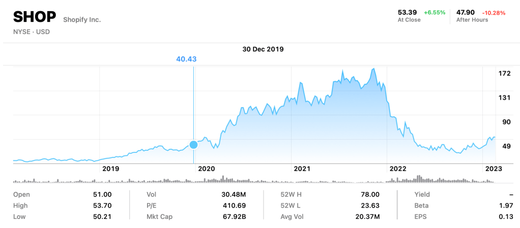 If you zoom out, basically Mr Market is valuing Shopify just slightly higher than its pre-pandemic price, despite its tremendous growth she has made from 2019 to 2022. I can only say Shopify is a victim of her own success during the pandemic period.
