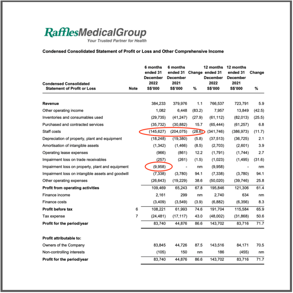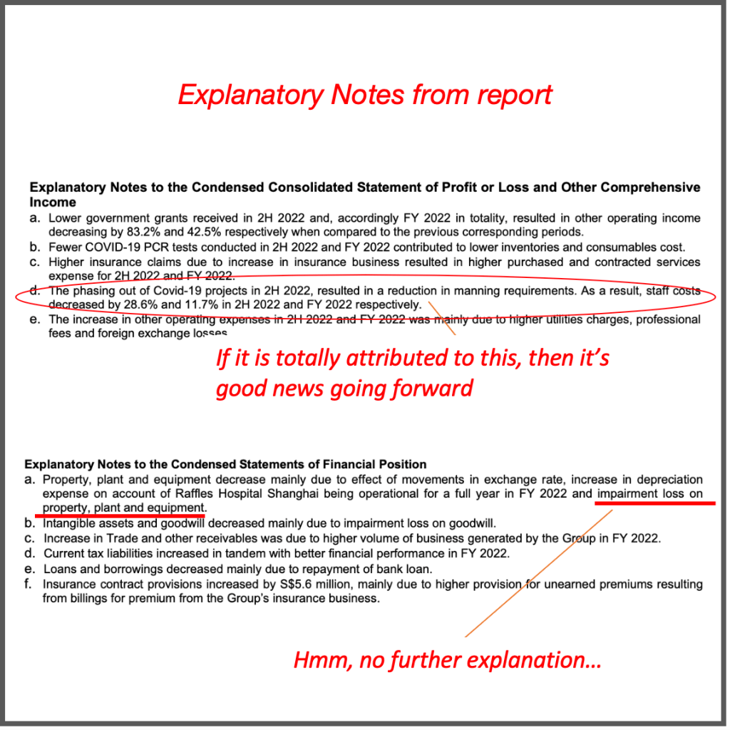 One item that sticks out like a sore thumb is the almost $10 mil impairment loss on property, plant and equipment! There is no further elaboration even in the explanatory notes but it seems to be linked to Raffles Hospital Shanghai. I guess it is likely to be an one-off loss and hopefully the management can shed some light on it during the AGM.