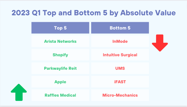 * Arista Networks, Shopify, iFAST and Micro-Mechanics have a larger position size in the portfolio, resulting in a higher absolute gain or loss.