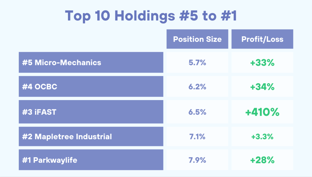 The plummet of iFAST and Micro-Mechanics share prices over the past year has caused them to slide down the ranking. However, iFAST with the earlier strong appreciation of price and Micro-Mechanics with their substantial and stable dividend, have managed to hold on to a place among the Top 5!