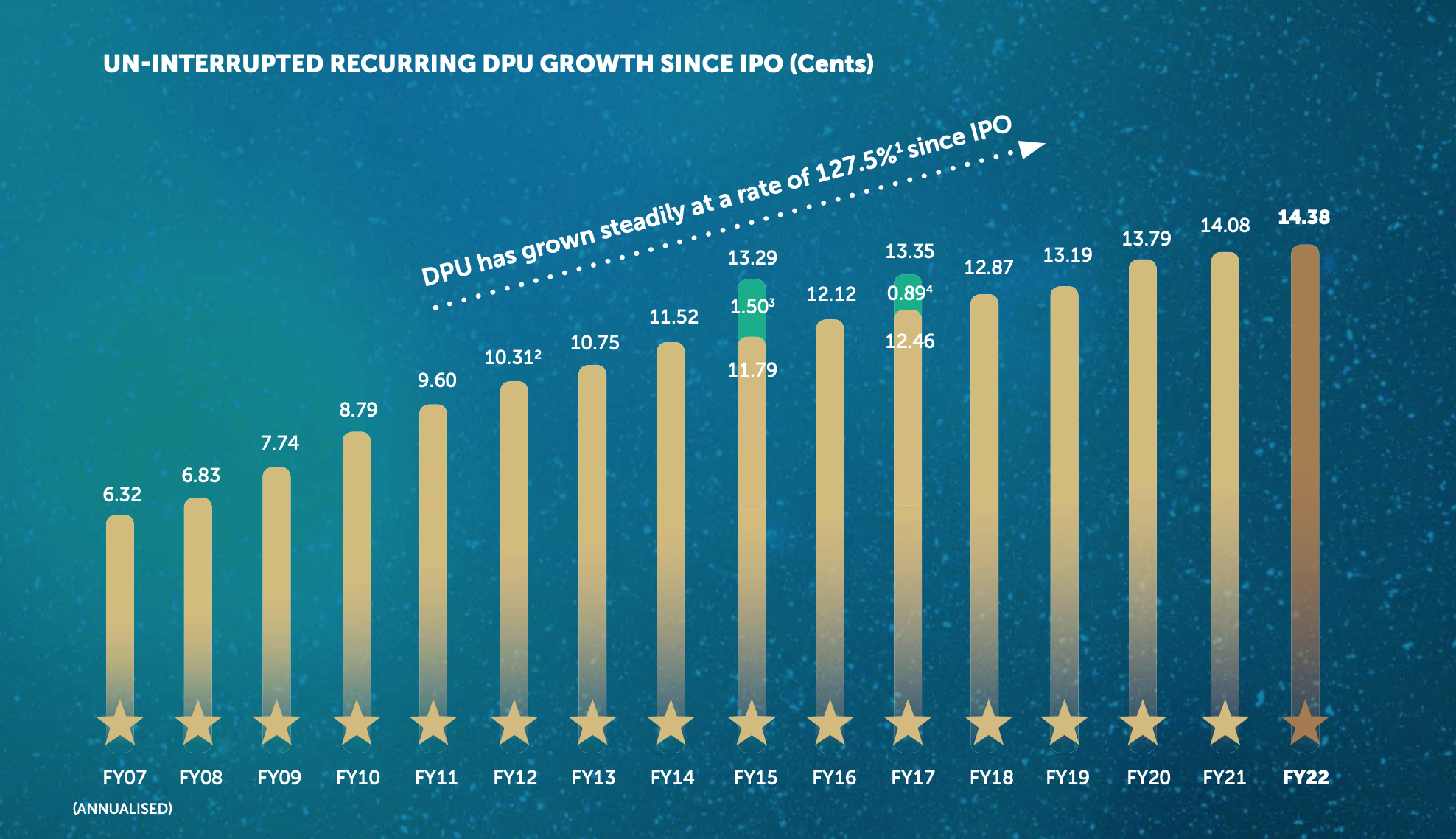 And in the first position, it’s none other than the boring Parkwaylife Reit. Slowly and steadily, DPU has increased uninterrupted for 15 years, and even during the pandemic period! With the new master lease, we can expect sustainable rental growth going forward for her Singapore portfolio. While the current yield of about 3.6% is nothing to shout about, this will keep increasing and we can expect a jump from FY2026 onwards.