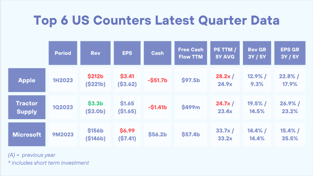 MSFT has a strong Q3 with revenue and EPS up by 7% and 10% respectively. OpenAI is likely the next growth driver. It is too technical for me but I am seeing big names adopting Azure OpenAI Service and OpenAI API. While it is still early days, the potential looks huge and that will also benefit my top US holding – ANET!