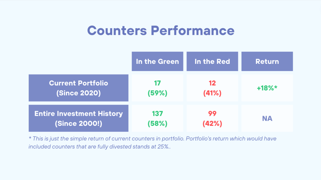 Over more than 20 years of investing (yes, feeling old), my win rate is only 58%! However, for every dollar that I lost during this period, I made about $4.6 in profit. Also, my top 10 counters (that’s just 3.8% of my pick) account for 75% of my net profit!