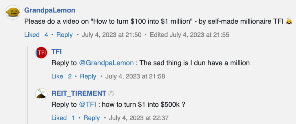 The idea for this video came from the following conversation in InvestingNote.