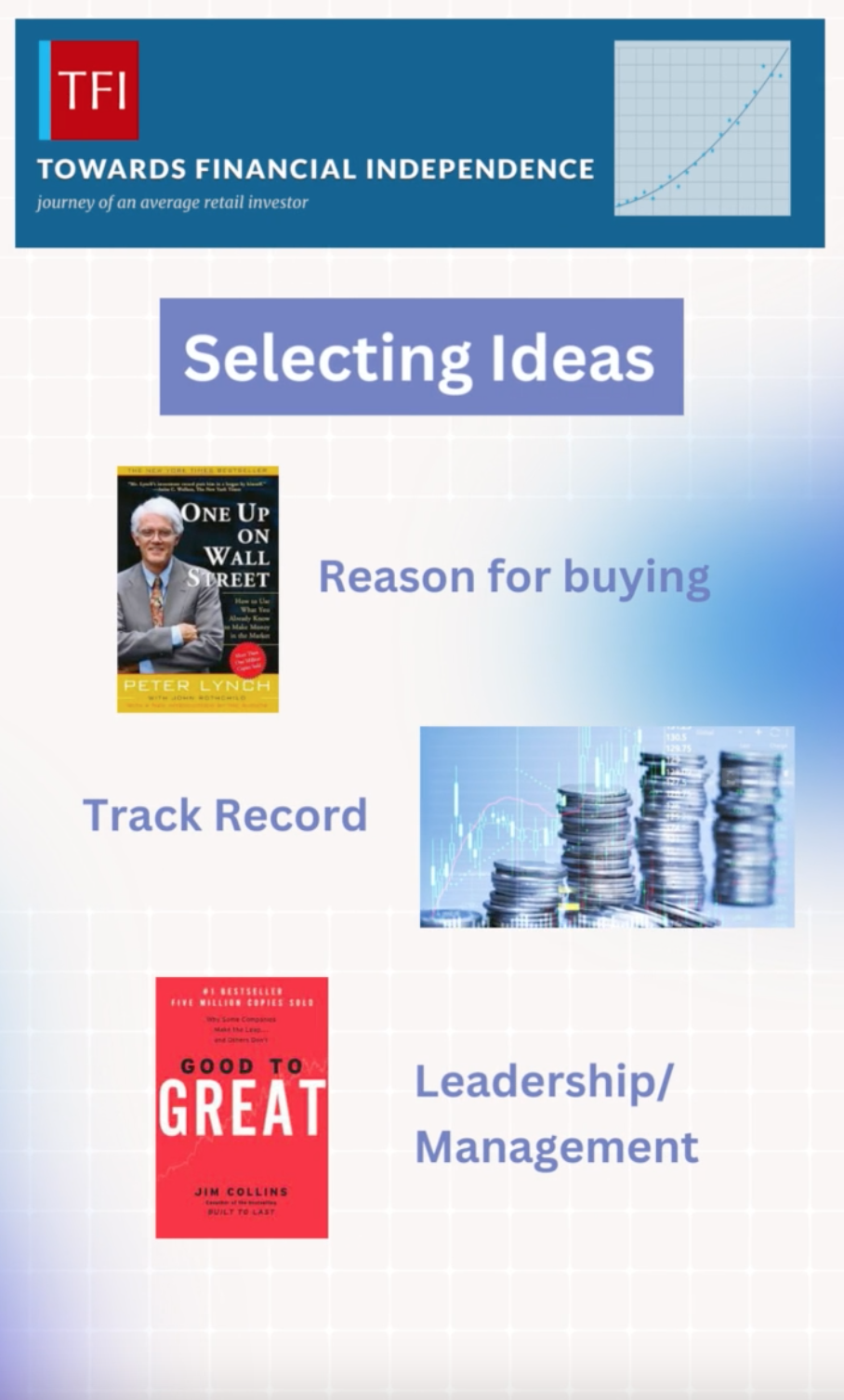 In broad strokes, it involves getting ideas from various sources, selecting based on criteria and finally taking action to own and monitor the investment. Below are some highlights from the video.