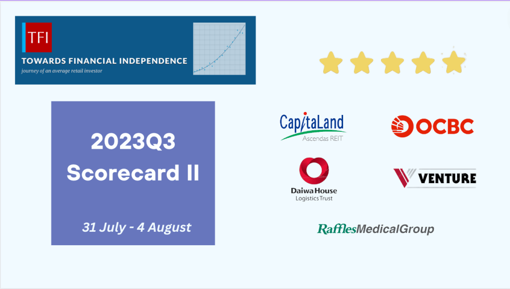 This is part II of the scorecard which I am sharing my opinions on the quarterly/half-yearly results of CapitalandAscendas REIT, Daiwa House Logistics Trust, OCBC Bank, Raffles Medical Bank and Venture.