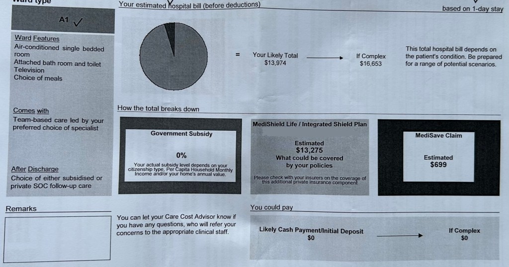 A new thing that I learned is that after discharge, there is a choice of either private or subsidised follow-up. It used to be once you are in a non-subsidised ward, then the follow up will not be subsidised too. I do wonder why is there a change in the policy.