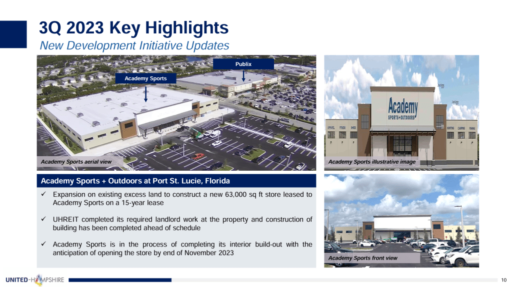 It reported a decent Q3 quarter with distributable income down by 5%. Hopefully the opening of Academy Sports will improve the distribution going forward.