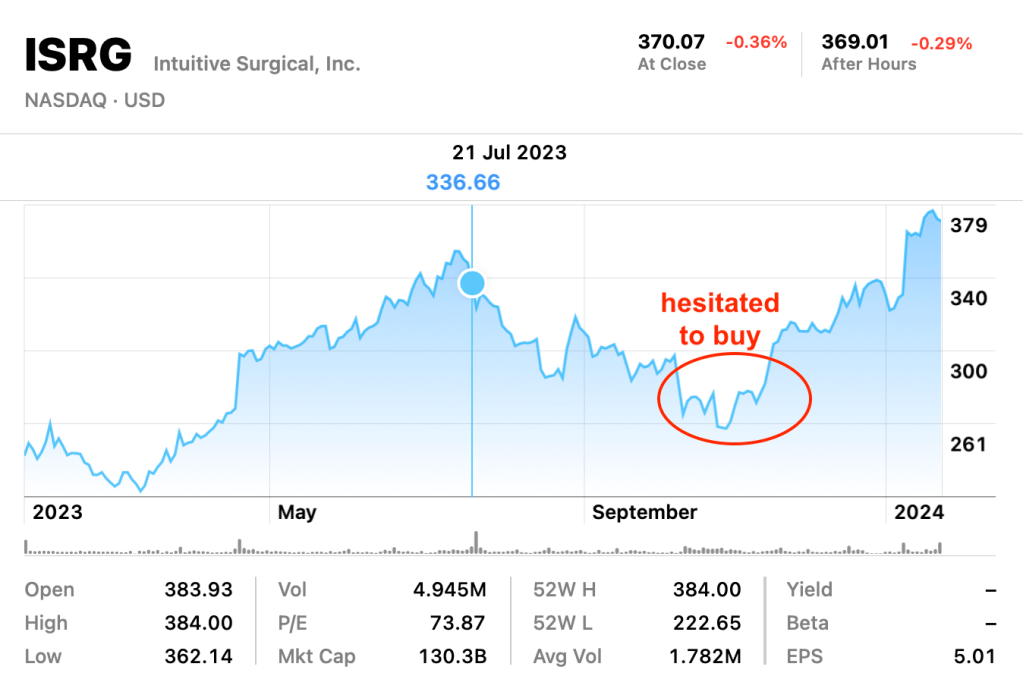 I was right by reducing my stake last July when it was trading at a PE of 96 then! However, I hesitated to buy some back when it went below $300 and now it is trading above my sold price!