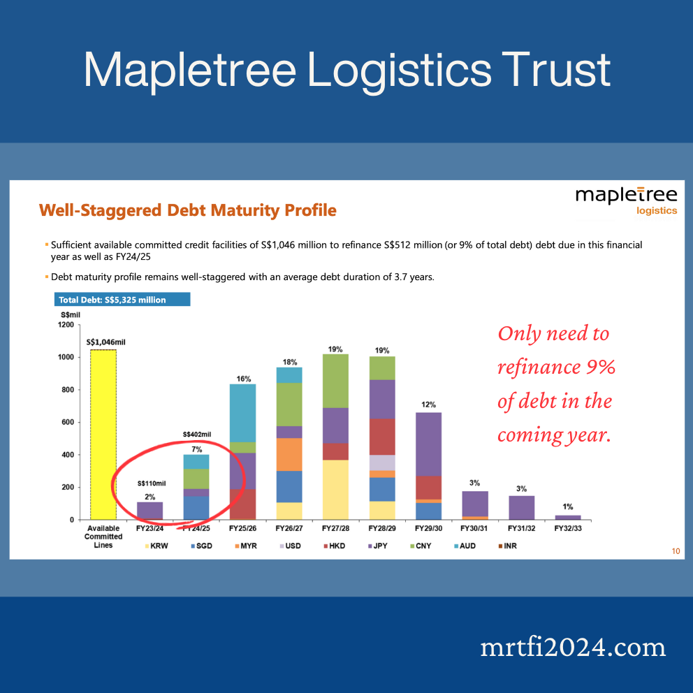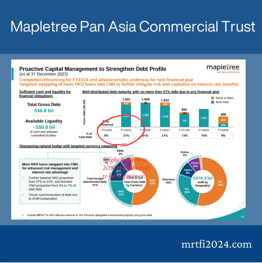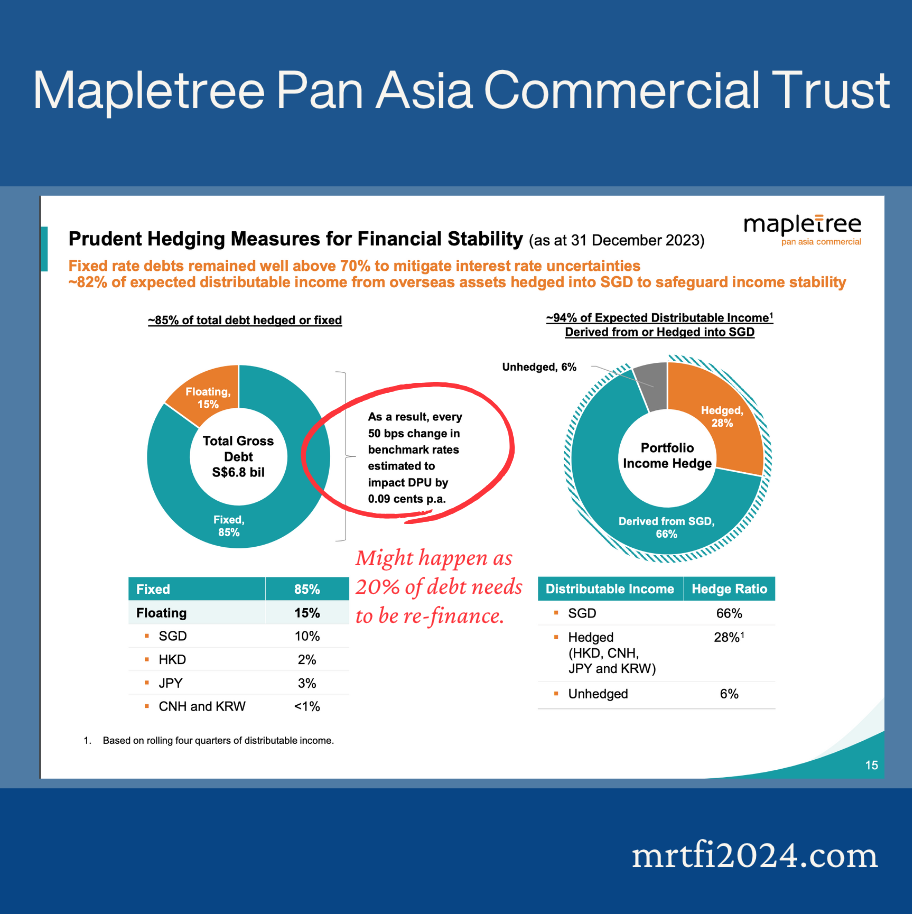 While they are done with refinancing this year, there’s 21% of debt to refinance for the next year. So their interest rate might still creep up next year. They are looking into swapping more HKD loans into CHN to capitalise on interest rate benefits but there’s probably a limit how much they can swap.