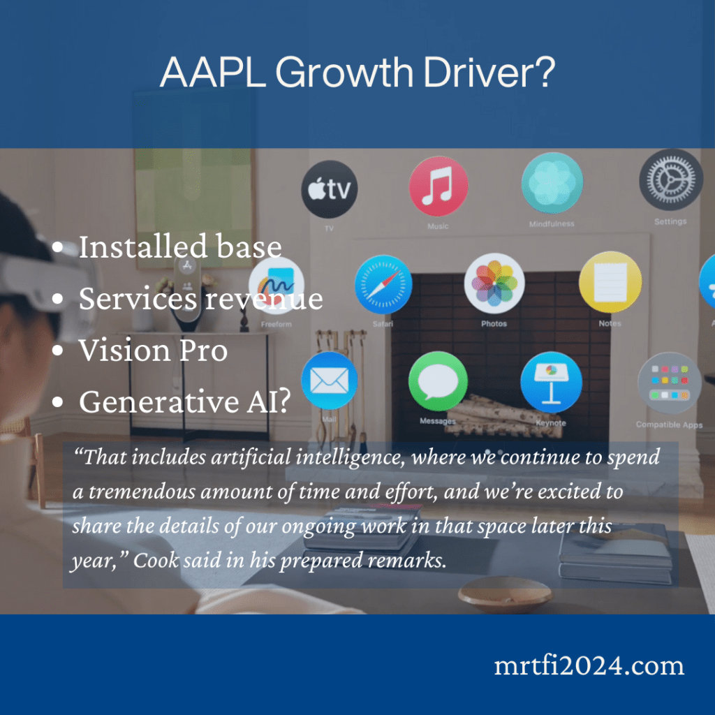 The last interesting snippet comes from Tim Cook’s remarks that they will be sharing their work on AI later this year. It is unlikely that it will be at any level near that of MSFT, GOOG, META, but it is still nice to hear that they are working on it. Looking forward to see their spin on it.