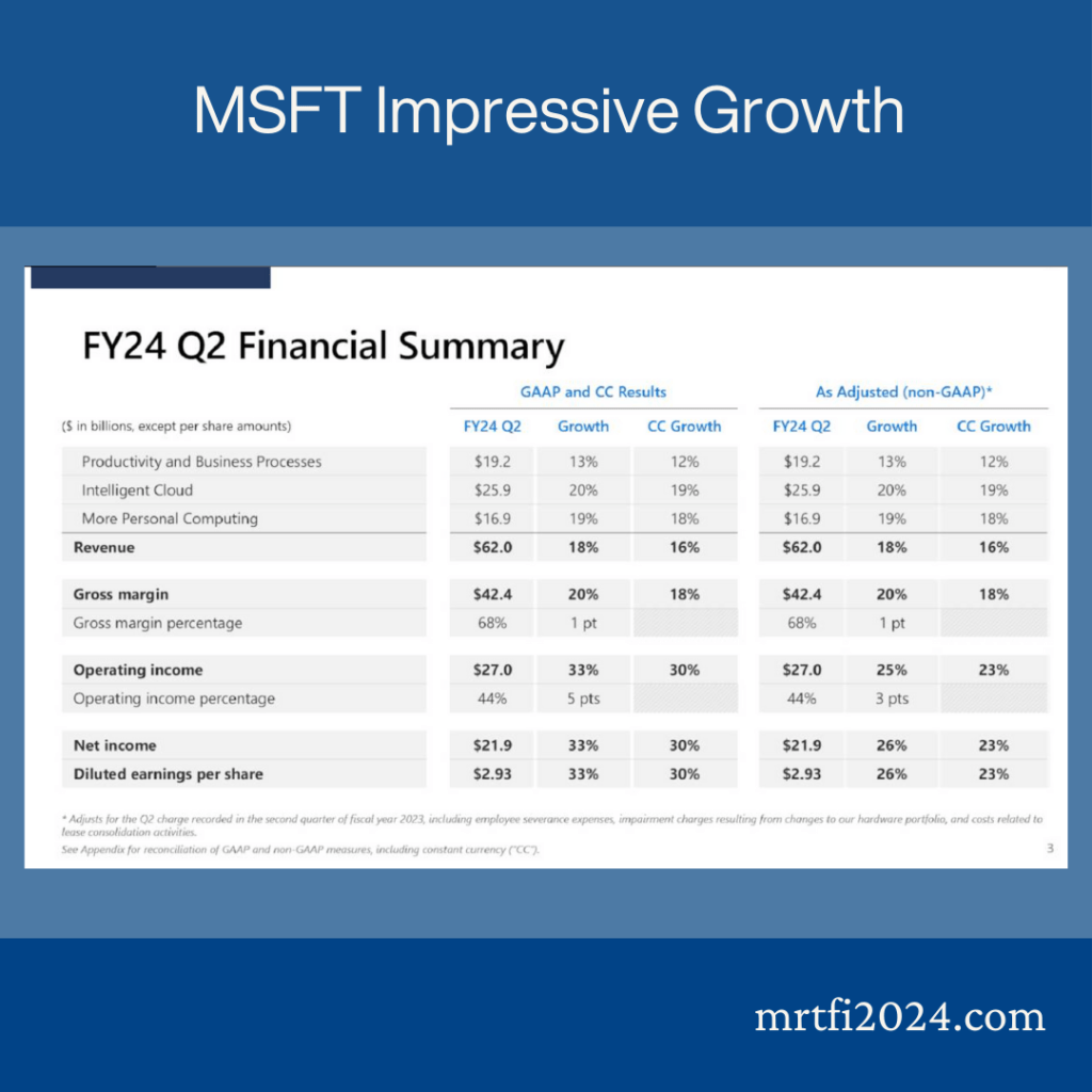 After a sluggish FY2023, they are back on their growth track. Both reported strong quarterly results recently and MSFT’s number definitely impresses.
