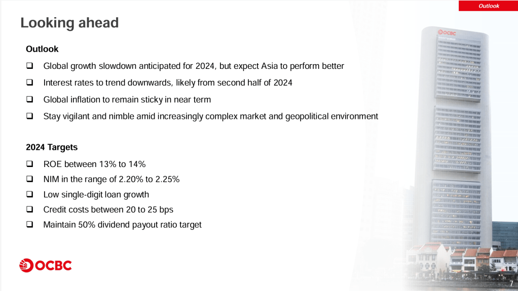 Assuming the boss is spot on with her 2024 target, then I would think the group can at least maintain what they achieved this year. The drop in NIM can be mitigated by the increase in loan growth and non-interest income. So dividend for the upcoming financial year is likely to be around $0.82.
