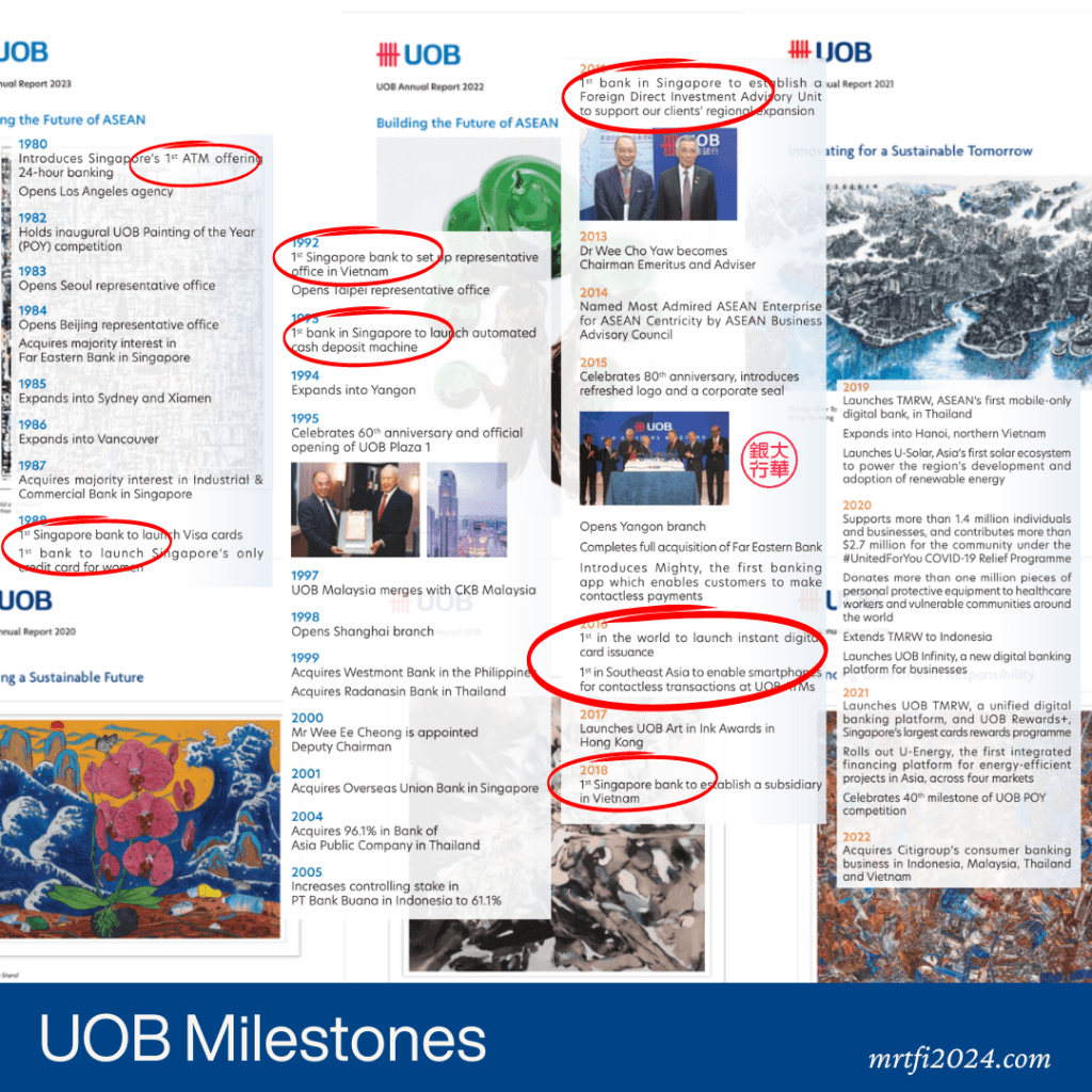 From the time I first bought their shares in 2022, I always perceived that they are the most conservative among the three local banks. However, now that I looked through their milestones, I think a better way to think about UOB is that they are the most prudent when it comes to dealing with the finance. In terms of expanding to new markets or having new initiatives, I would say that they are actually quite adventurous.