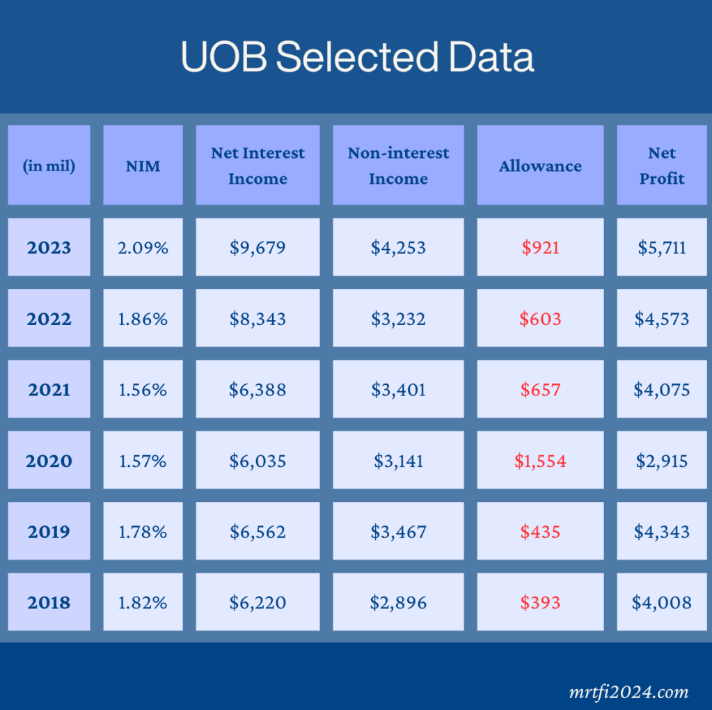 A look at the past 6 years data shows that UOB has grown both their net interest income and non-interest income. As mentioned before, while net interest income is affected by net interest margin (NIM), it is not the only factor. For example, NIM for FY2018, FY2019 and FY2022 were similar but the net interest income was much higher in FY2022. In fact, while FY2019 NIM was slightly lower than that of FY2018, its net interest income was 5% higher.