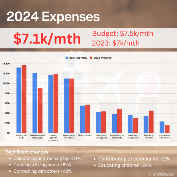 As a result, our average monthly expenditure was approximately S$7,100, which is S$400 less than the initial budget and only a slight increase to the previous year.