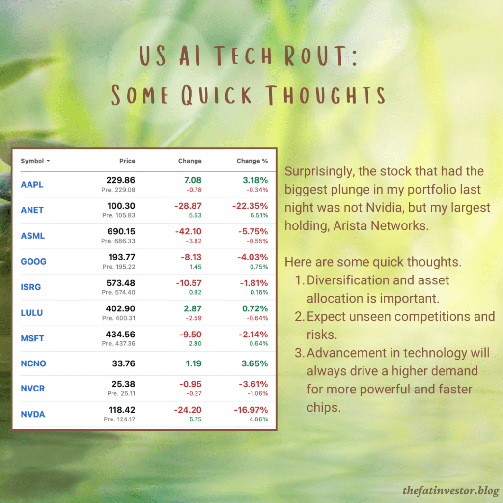 First, I took some profits off the table last December as I felt the US market was frothy. Hence, psychologically I have been mentally prepared for a market correction.