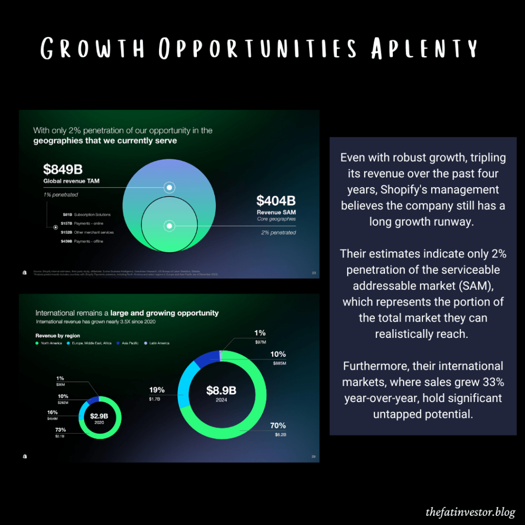 Additionally, by creating new products and expanding into more countries, Shopify has continuously increased its addressable market.