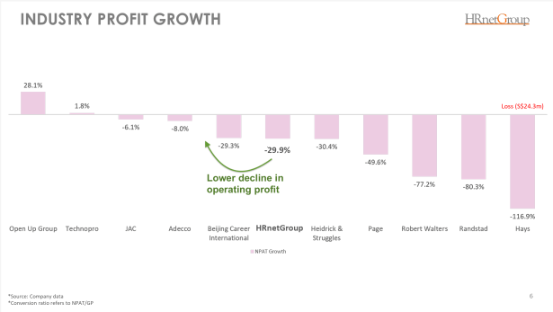 Amid industry headwinds, HRnetGroup’s resilient operational performance is evident in the above image, which compares profit growth among major recruitment companies.