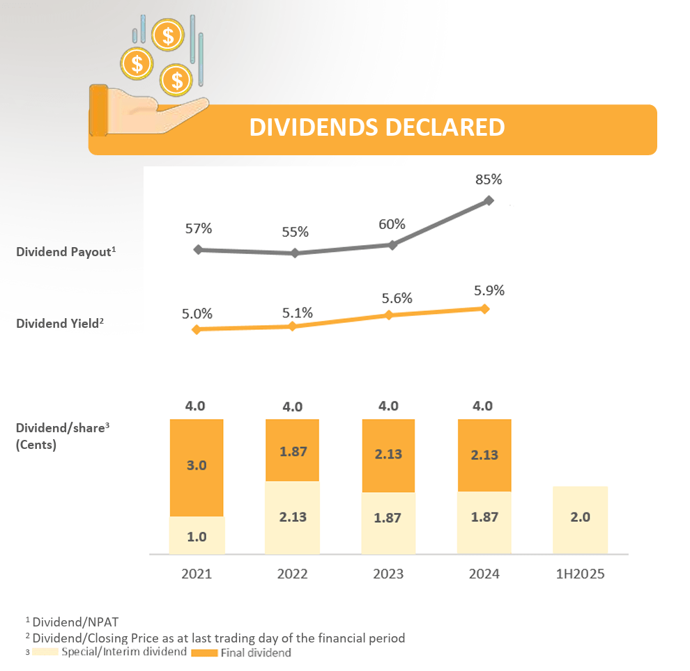With the improved performance for this period, the company even increased its interim dividend per share to S$0.02.