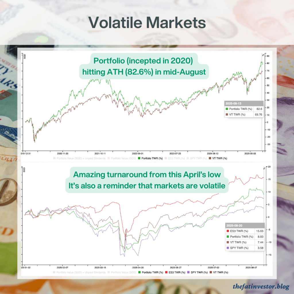 If you are wondering why the 8.8% return for SPY doesn’t match the 3.58% shown in the above chart, it’s due to currency fluctuations. Since the chart is in SGD, it includes a 5-6% loss from the US dollar’s decline this year.