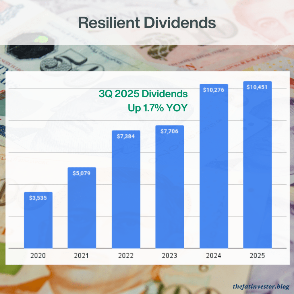 Combined with the possibility of higher dividends from NikkoAM-StraitsTrading Asia ex Japan REIT ETF (SGX: CFA) and Frasers Centrepoint Trust (SGX: J69U) in the final quarter, I might just surpass last year’s record of S$30,100 collected dividends.