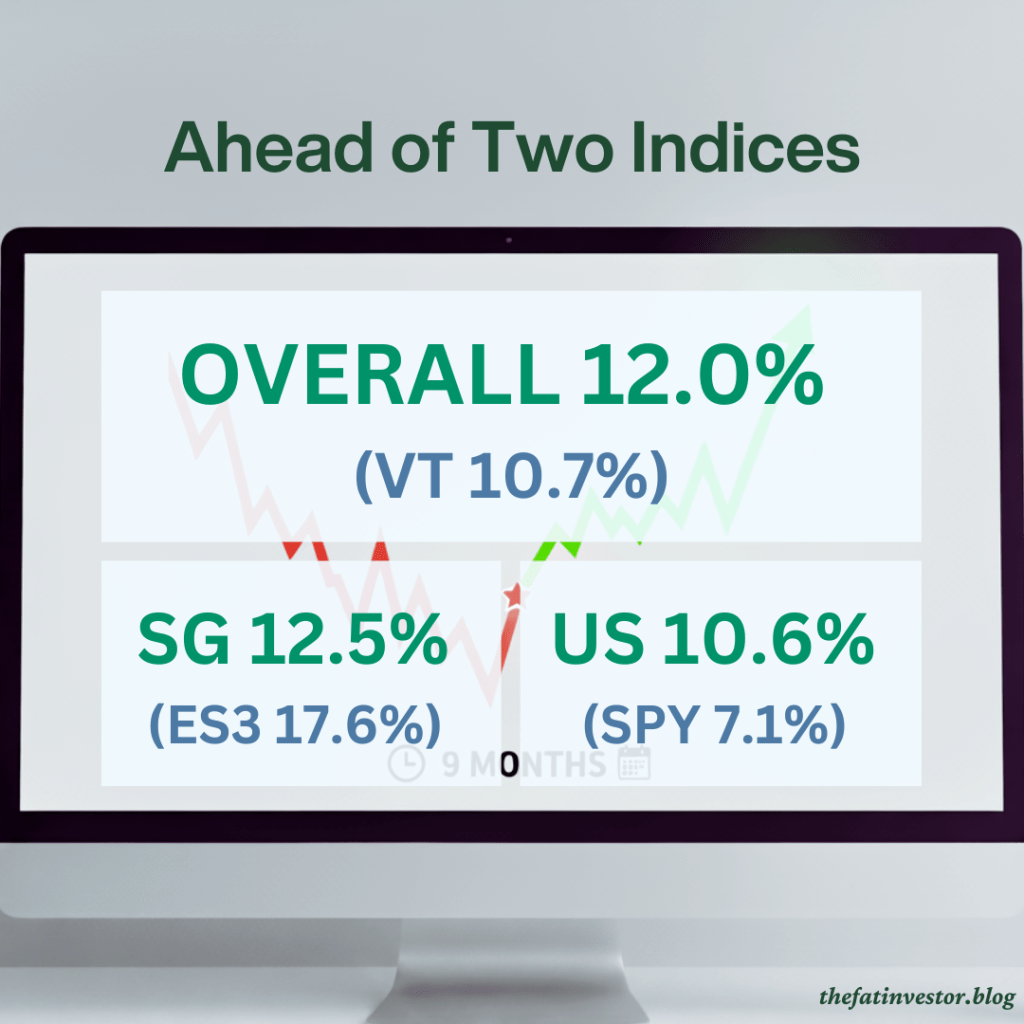 While my SG portfolio continues to trail STI ETF, it has kept pace with the rally during the past quarter.