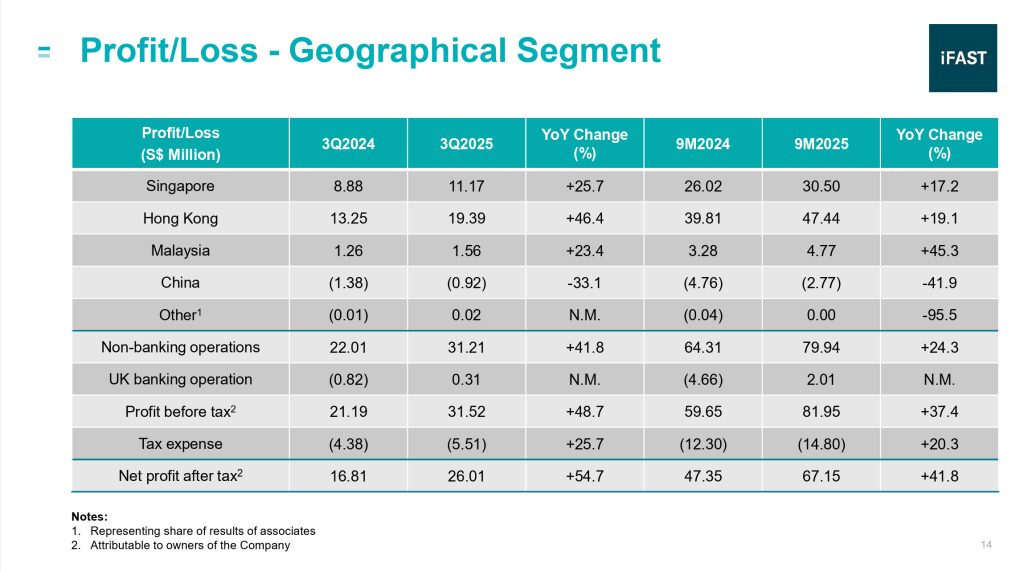 Singapore, iFAST’s core market, demonstrated clear acceleration, posting a surprisingly strong 26% YOY increase in profit (PBT) to over S$11 million. This is double the growth rate shown in 1H 2025, suggesting deep underlying momentum in the wealth platform.