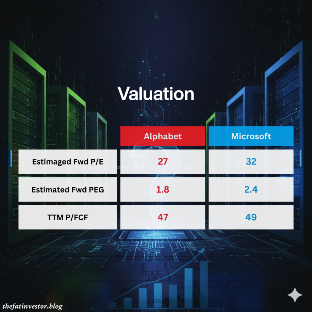 Given Google’s TPU advantage, the market may eventually re-rate Alphabet, expecting its custom silicon to drive a faster return from its CapEx, thus making its current valuation more compelling than Microsoft’s.