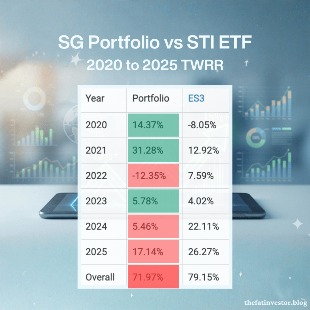 While the SG portfolio provided the strongest net gains for my wealth, it’s worth examining why it trailed the STI ETF so noticeably.