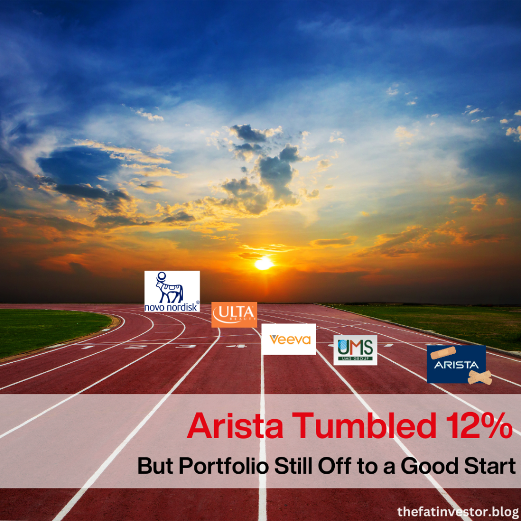 Therefore, while I believe the steep drop in Arista is uncalled for and Novo could see further upside, I am not opening my wallet to increase my position in either my top or bottom holdings.