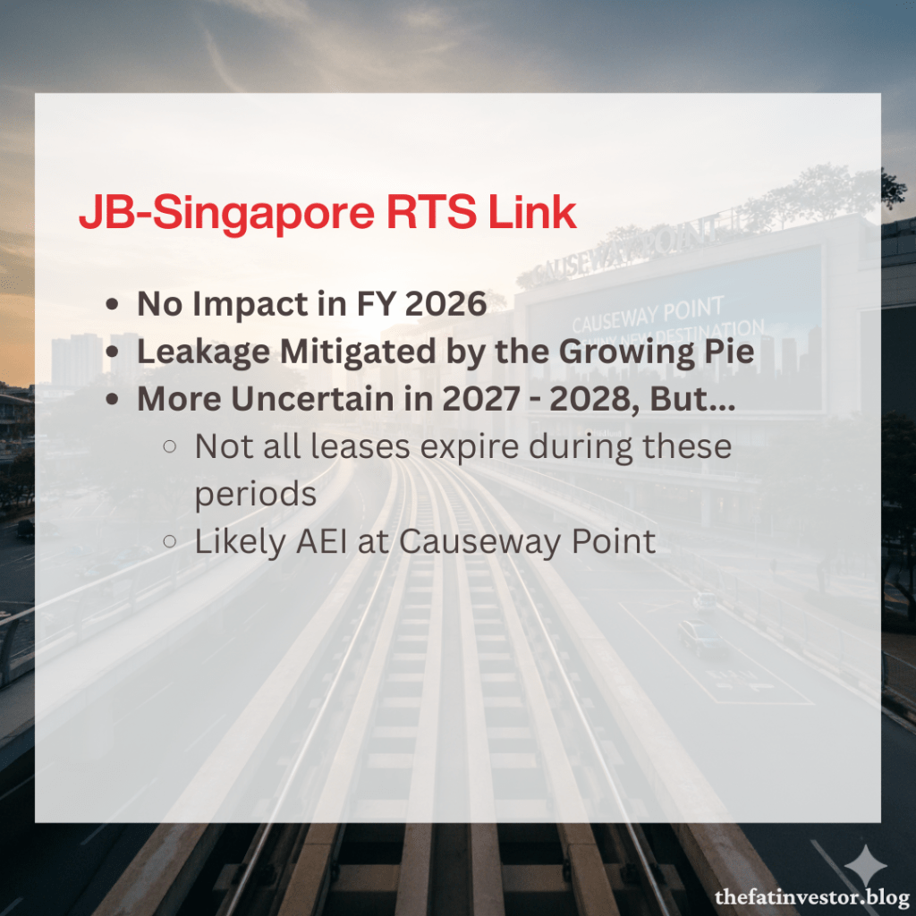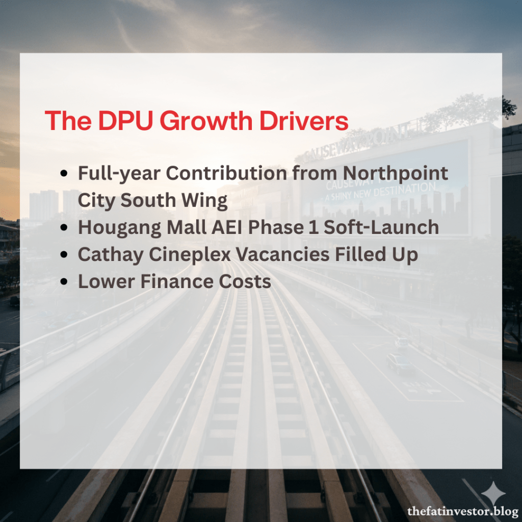 However, with NPCSW fully integrated, Hougang Mall coming back online, the savings from reduced interest payments, and no impact from RTS yet, the increase for FY 2026 should be noticeably higher.