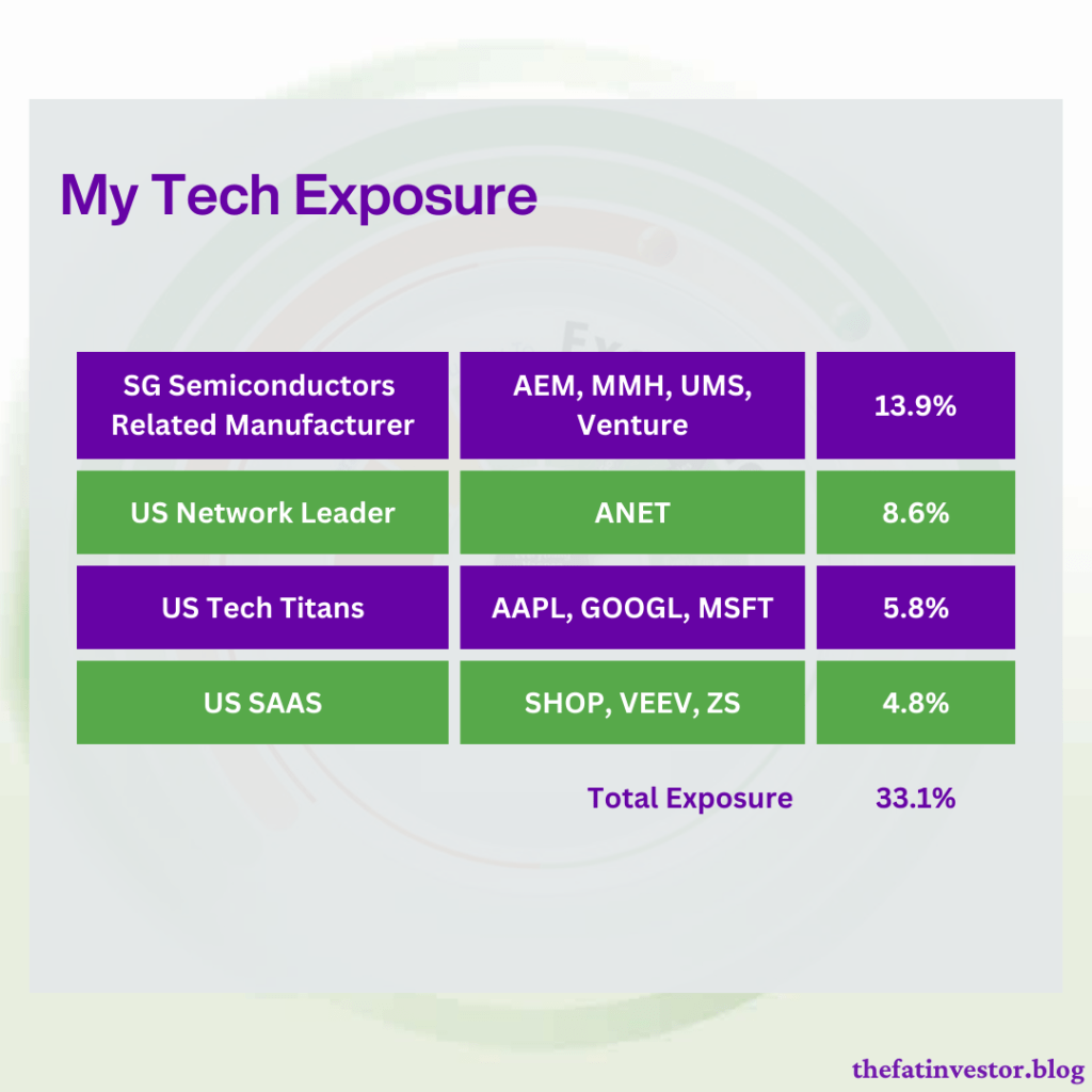 Moreover, my exposure to the manufacturing and tech sector is sitting at a heavy 33%! (see image below)
