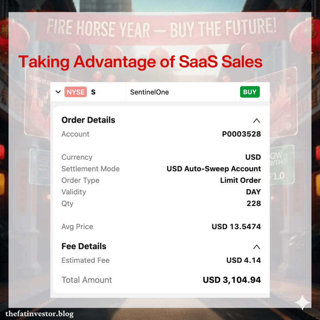 On the same note, I am glad I have spare cash in my account to take advantage of the current “SaaS-pocalypse.”